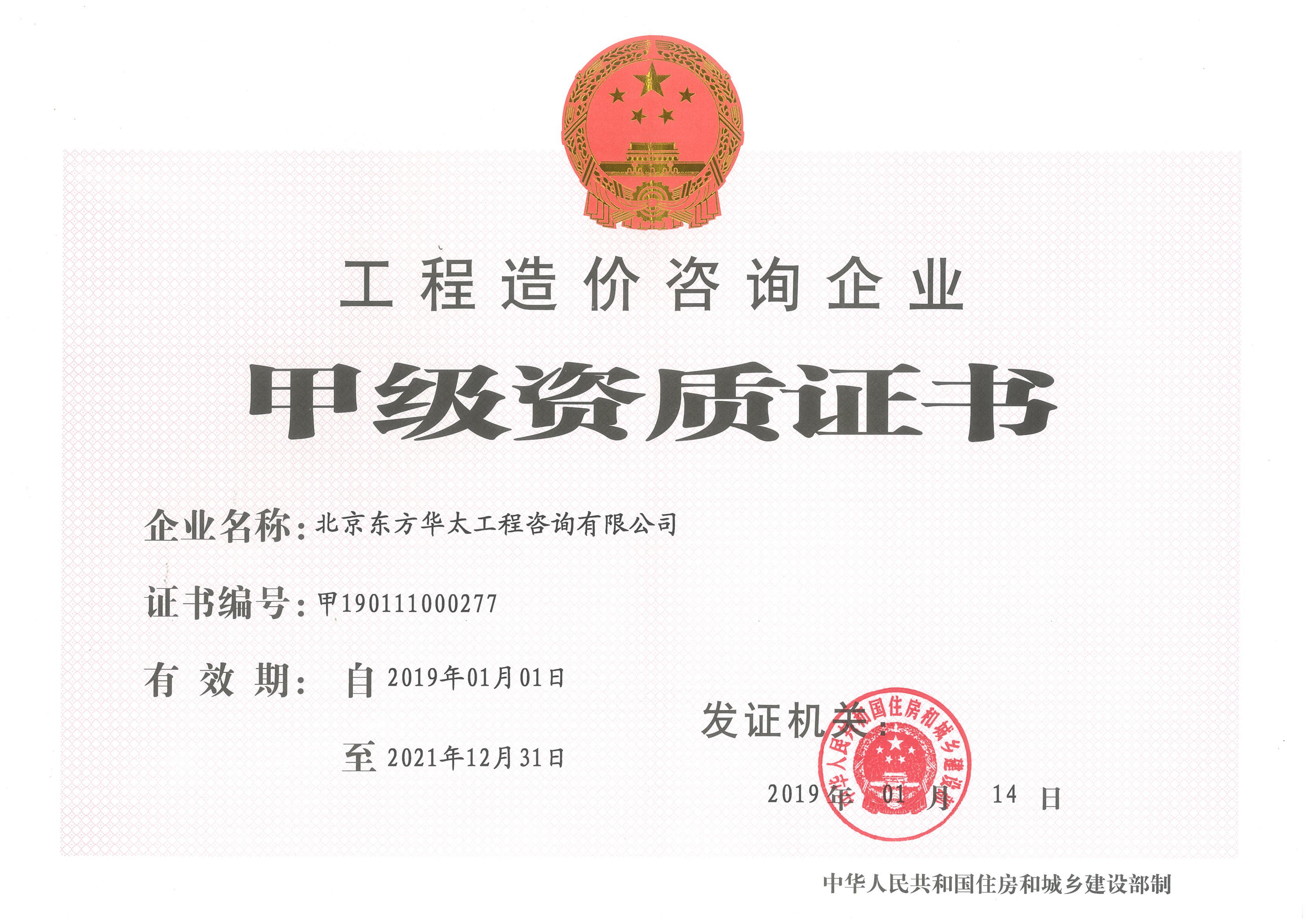 工程造價(jià)咨詢甲級資質(zhì)