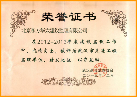 2012~2013年武漢市先進(jìn)工程監(jiān)理單位