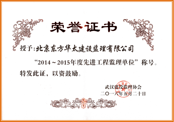 2014-2015年度武漢市先進(jìn)工程監(jiān)理單位