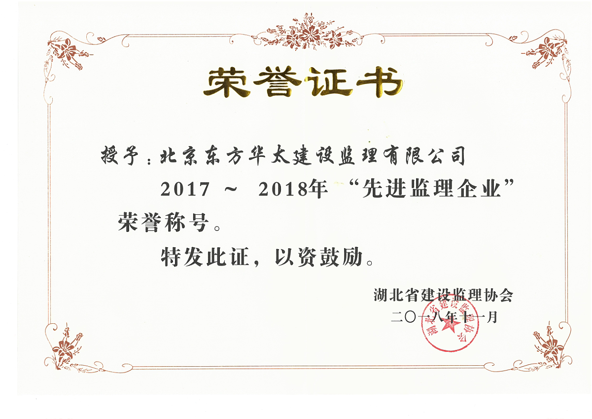 湖北省2017~2018先進(jìn)監(jiān)理企業(yè)